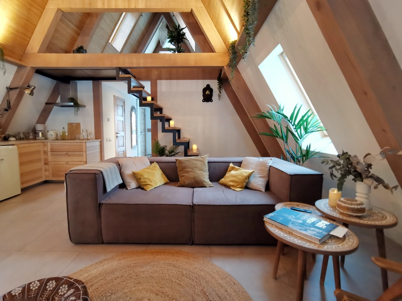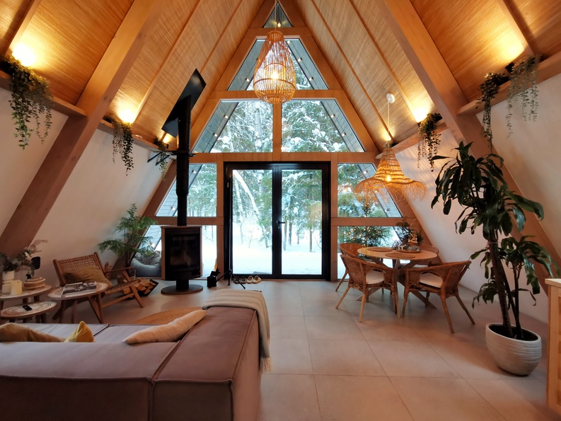 Balidom - большой афрейм в островном стиле с дровяным камином и двумя спальнями При создании интерьера мы вспоминали наши поездки в центральную часть острова Бали: джунгли, Убуд, Monkey forest - простота и гармония. В интерьере много деталей, привезенных с острова. Мы старались нарисовать наши воспоминания начиная от ароматов до тактильного ощущения поверхностей. Максимальная вместимость дома 2+2 человек (базовая стоимость указана для двоих. Каждый дополнительный гость за доп. оплату. При оформлении заявки на аренду необходимо добавить гостей в поле “Дополнительных мест”. Размещение с детьми и питомцами не предусмотрено. Заселение с 16:00 до 21:00, выезд до 12:00 Перед оформлением брони и оплатой ознакомьтесь внимательно с правилами проживания, условиями оформления и договором аренды. Детали: · Теплый дом с индивидуальной зоной гриль · Панорамные окна с видом на дикий лес · Две спальни с двуспальными кроватями и лучшими матрасами Bluesleep · Диван в гостиной · Кухня с индукционной плитой, свч и тихой вытяжкой · Посуда для приготовления еды, бокалы · Капельная кофеварка · Санузел с душевой · Дровяной камин · Яндекс.станция Алиса · Проектор с экраном · Потолочный вентилятор · Уединенная терраса и своя зона гриль · Быстрый Wi-Fi · Два парковочных места